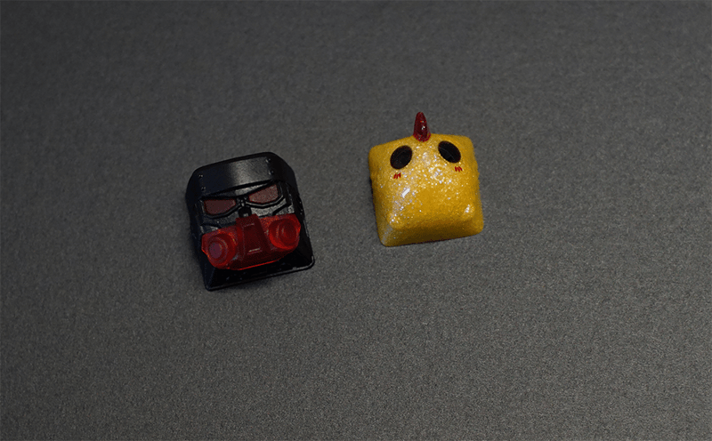 Cách 2: Dùng các keycap artisans Đây là loại keycap được làm thủ công, theo một chủ đề hay một nhân vật nào đó. Thường rất nổi bật với thiết kế 3D và hình dáng kỳ lạ. Bạn có thể thay môt hay một vài keycap trên bàn phím cơ của mình là đã đủ để tạo dấu ấn riêng cho em nó. Nhiều quá đâm ra loãng và mất hay. Và hơn nữa giá keycap artisans cũng khá chát.