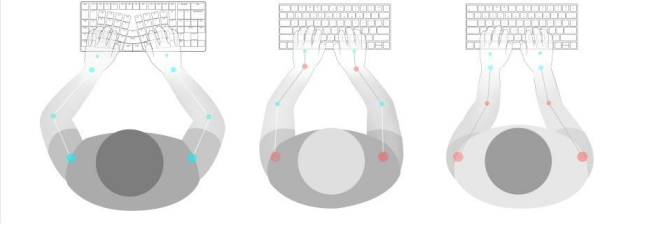 Như bạn có thể thấy trong hình bên dưới, nếu bàn phím của bạn đặt tay không đúng vị trí, bạn rất dễ gõ sai tư thế (chùng xuống, cổ tay cong, cánh tay không duỗi thẳng). Về lâu dài, tư thế không tốt này dễ dẫn đến chấn thương nặng hơn. Chúng ta đã được dạy để duy trì tư thế ngồi đúng từ khi còn nhỏ, tư thế đánh máy của bạn cũng quan trọng không kém.