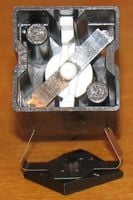 - Điểm giữa này được gắn vào một pittong. Khi ta nhấm phím, sẽ tạo áp lực lên điểm giữa của lò xo, đẩy căng các thanh kim loại. Và lò xo đang ở hình chùm sẽ trở thành dạng hình chữ U, và tạo lực kéo fly plate lên. Hai chiếc đinh bên trong housing của switch sẽ tạo thành hai điểm giới hạn cho quãng đường truyền động của switch.