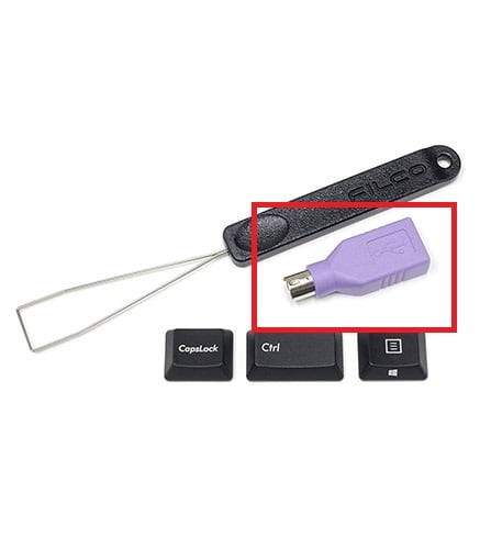 Tất nhiên đơn giản nhất là mua các bàn phím cơ hiện đại có niêm yết tính năng NKRO ngay từ đầu. Trong quá khứ đa số các bàn phím cơ chỉ có khả năng NKRO thông qua đầu nối PS/2 (đó là lý do anh em luôn thấy các mẫu phím cơ đời cũ một chút ngoài cáp USB bình thường còn luôn đi kèm với đầu nối PS/2 trong hộp sản phẩm và nhà sản xuất luôn highlight là phải giữ nó thật kỹ, mất là khỏi hòng NKRO gì). Đây, hình dạng đầu nối PS/2 đảm bảo NKRO 100% đây: