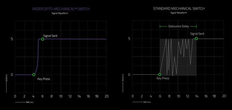 So sánh debounce delay ở switch Razer opto và swtich cơ học bình thường