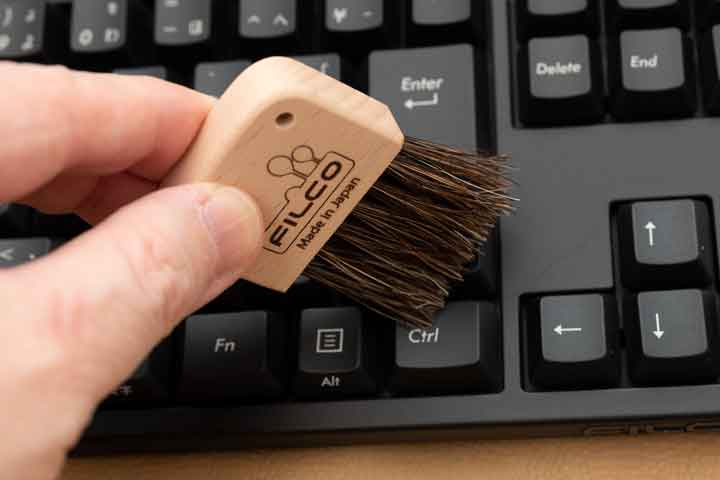 Những lớp bụi theo thời gian sẽ làm mất đi vẻ bóng bẩy, mượt mà của bàn phím cơ khi mới mua. Tuy nói là tuổi thọ của bàn phím cơ chính hiệu cao hơn nhiều so với bàn phím màng cao su. Đơn cử như con Filco Minila Air của mình được bảo hành tới 5 năm và mình thì đã xài tới giờ đã 3 năm mà không sứt mẻ miếng nào. Nhưng nếu nó bị bám bụi thì nhìn vẫn cũ cũ chán chán như thường. Vì cuối cùng cảm giác gõ là thứ bạn thật sự cảm nhận và ghi nhớ, nhưng vẻ ngoài cũng quan trọng không kém. Nó là một phần của cảm hứng khi dùng bàn phím cơ. Cho nên việc đầu tiên để có lại tình yêu nguyên vẹn với bàn phím của mình chính là thường xuyên vệ sinh lau chùi đúng cách cho em nó. Mình phân làm 2 dạng vệ sinh: một là vệ sinh hàng tuần/ hàng tháng. Hai là vệ sinh sâu nửa năm một lần. Với dạng thứ nhất, có tác dụng giảm thiểu lượng bụi bám mỗi ngày vào bàn phím để giúp cho khâu vệ sinh sâu tiếp theo nhẹ nhàng, đơn giản hơn. Khâu này có thể làm nhanh gọn ở mặt ngoài bằng các dùng cọ vệ sinh bàn phím cơ chuyên dụng, quét kỹ mặt trên và xung quanh, rồi sau đó đi sâu vào các kẽ giữa keycap. Kỹ hơn có thể kết hợp với đồ xịt bụi.