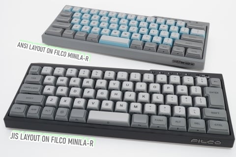 Một cách dễ hiểu hơn thì mọi người có thể xem thêm ở hình dưới này. Đây là hai kiểu layout ANSI và JIS trên cùng một cỡ mini của bàn phím Minila-R 60% với 63 phím của Filco (Nhật).