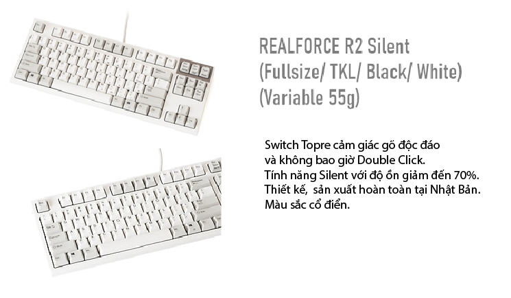 - Realforce R2 Silent (Uniform/ Variable fullsize hoặc TKL)