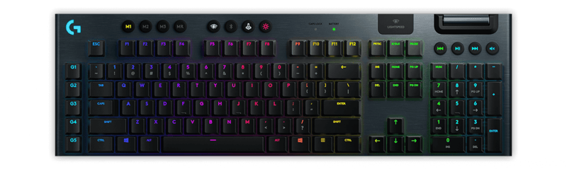 Về phần chức năng và hiệu suất, hai model này tương tự nhau. Cùng có tùy chỉnh RGB từng phím, macro từng phím, cùng có 5 phím G đặc biệt để điều chỉnh một số tính năng trong game. Điểm khác nhau duy nhất giữa hai model ultra-thin này chính là ở kiểu kết nối: G815 (200 USD) kết nối có dây, còn G915 (250 USD) kết nối không dây với độ trễ thấp dưới 1ms và thời lượng pin khi dùng Bluetooth là 30 giờ full đèn nền và có thể lên tới 70 giờ nếu không dùng đèn với một lần sạc duy nhất trong ba giờ.