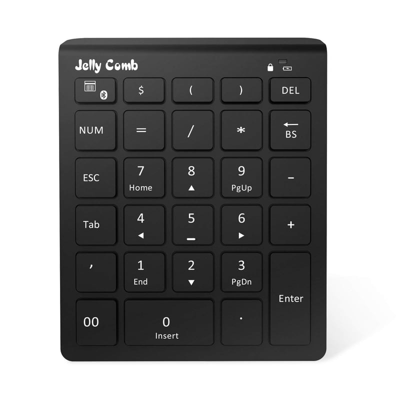 Bàn phím N019 Jelly Comb có 28 phím và dùng kết nối không dây Bluetooth, rất tiện cho những ai muốn có nhiều phím chức năng phụ trên cùng bàn phím numpad và muốn di chuyển nhiều. Tuy có nhiều phím nhưng em nó cực kỳ nhỏ gọn và nhẹ bâng, mang vác đi đâu rất dễ dàng. Hiện đang có giá 19 USD tại Amazon.