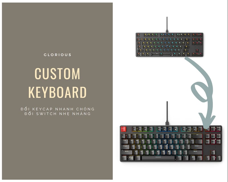 Khi đã biết qua muốn hết mấy mẫu stock keyboard thì bạn sẽ tới một khái niệm mới tốn thận không kém: custom keyboard. Là bàn phím tự ráp theo ý đồ và sở thích của mình. Có thể bạn không hẳn đã biết hết về các phần kỹ thuật để tự tay ráp một chiếc từ A-Z nhưng thế giới thật kỳ diệu khi ở đâu có cung ở đó có cầu. Các trang chuyên về phím cơ nước ngoài có nhận đặt hàng làm bàn phím cơ custom theo lựa chọn của khách, và trên mấy forum lớn nước ngoài, trong nước cũng có vài cá nhân nhận làm hàng custome kiểu này. Cho nên chỉ cần có tiền, có tâm, và có tò mò thì chuẩn bị tinh thần thôi, bạn sẽ có thêm một loạt con phím customized độc lạ, có duy nhất bạn có này. Và mình báo trước, đã đi tới đây thì hoàn toàn không dừng lại được rồi.